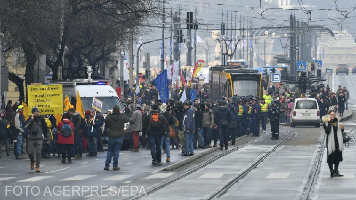 Mii de oameni au protestat sâmbătă la Budapesta faţă de un proiect de lege care le permite angajatorilor să le ceară salariaţilor să presteze până la 400 de ore suplimentare pe an, o măsură pe care criticii au numit-o 'legea sclaviei', transmite Reuters.