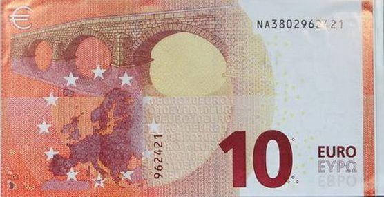 Ca și bancnota de 5 euro, pusă în criculație în mai 2013, cea de 10 euro are câteva modificări între elementele de securitate, precum și un design nou, dar destul de asemănător cu versiunile anterioare.