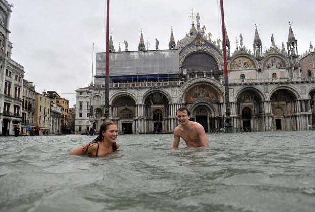 În timp ce localnicii și unii turiști încercau cu greu să se deplaseze pe străzile aflate sub apă, alți turiști nu au ratat ocazia de a se distra copios.