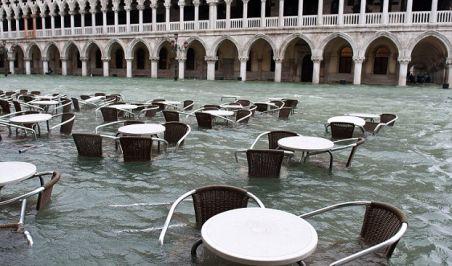 În centrul orașului, inundat în proporție de 70%, apa a atins un metru și jumătate. Multe terase au dispărut în lacul format peste noapte.