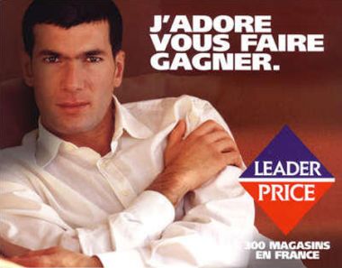 În februarie 1998, compania Leader Price iniţiază o mare campanie de publicitate, avându-l în prim-plan pe Zizou. ?Îmi place să vă fac să câştigaţi!?, spune Zidane de pe afişele răspândite pe chioşcuri. În mai puţin de un an, figura emblematică a fotbalistului a determinat o creştere explozivă a popularităţii echipei nationale franceze, de la 23% la 74%.