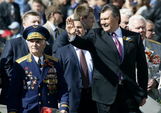 11. Preşedintele ucrainean Victor Ianucovici, împreună cu veteranii din Al Doilea Război Mondial, la Kiev. (EPA/Intact Images)