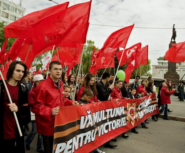 17. Susţinătorii pro-ruşi participă la un "marş al libertăţii", de la Arcul de Triumf din Chişinău până la Memorialul Gloriei Militare. (EPA/Intact Images)