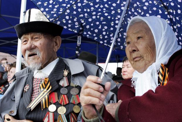 13. Veteranii din Kîrgîzstan iau parte la ceremonia din Bishkek. (EPA/Intact Images)