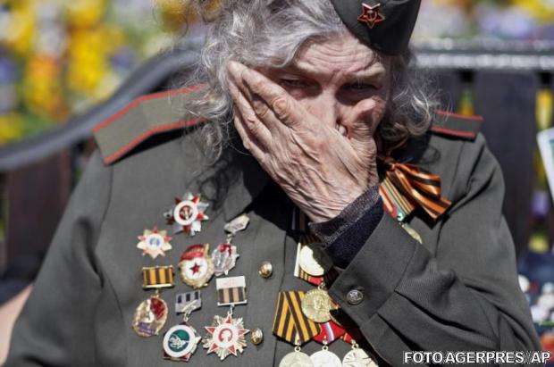 25. Veterana Lyudmila Anosova, în vârstă de 85 de ani, aşa numita fiică a regimentului, reacţionează în timp ce spune poveşti de război în timpul manifestaţiilor pentru Ziua Victoriei, de la Moscova.