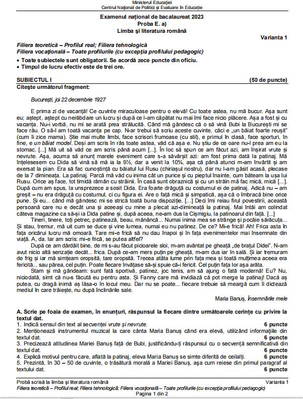Baremul de corectare pentru proba de Limba română de la Bacalaureat 2023, sesiunea de toamnă, publicat oficial pe edu.ro