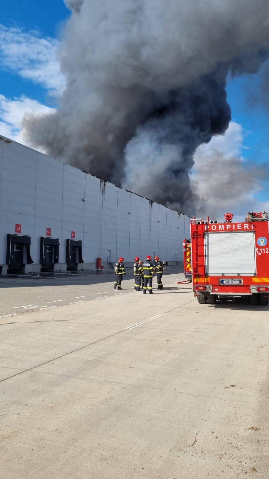 Incendiu puternic într-un parc logistic de pe A1. A fost emis RO-Alert pentru localitățile învecinate