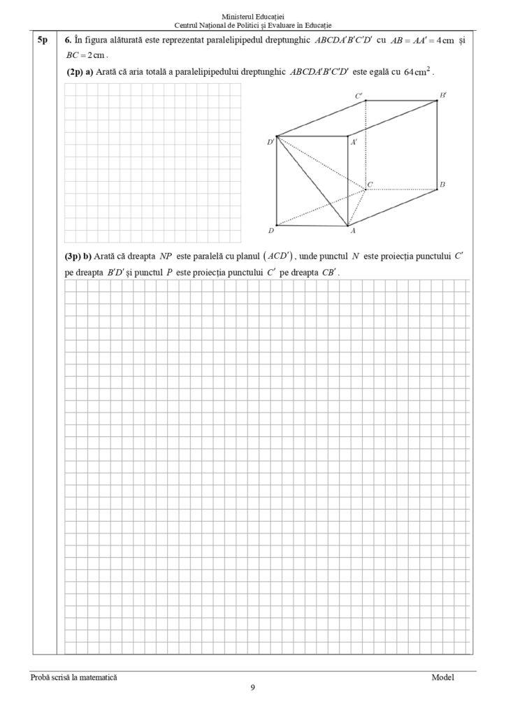 Model de subiect la Matematică pentru Evaluarea Națională 2024, clasa a VIII-a