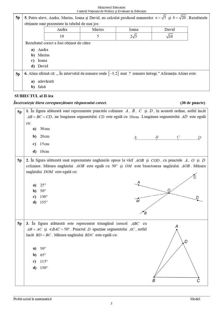 Model de subiect la Matematică pentru Evaluarea Națională 2024, clasa a VIII-a
