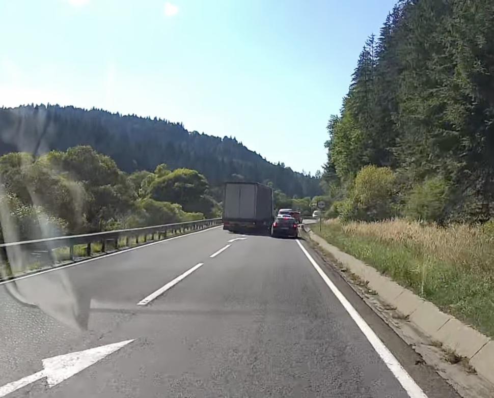 Mașini la un pas de a fi aruncate în prăpastie | Un șofer de camion a făcut o depășire extrem de periculoasă