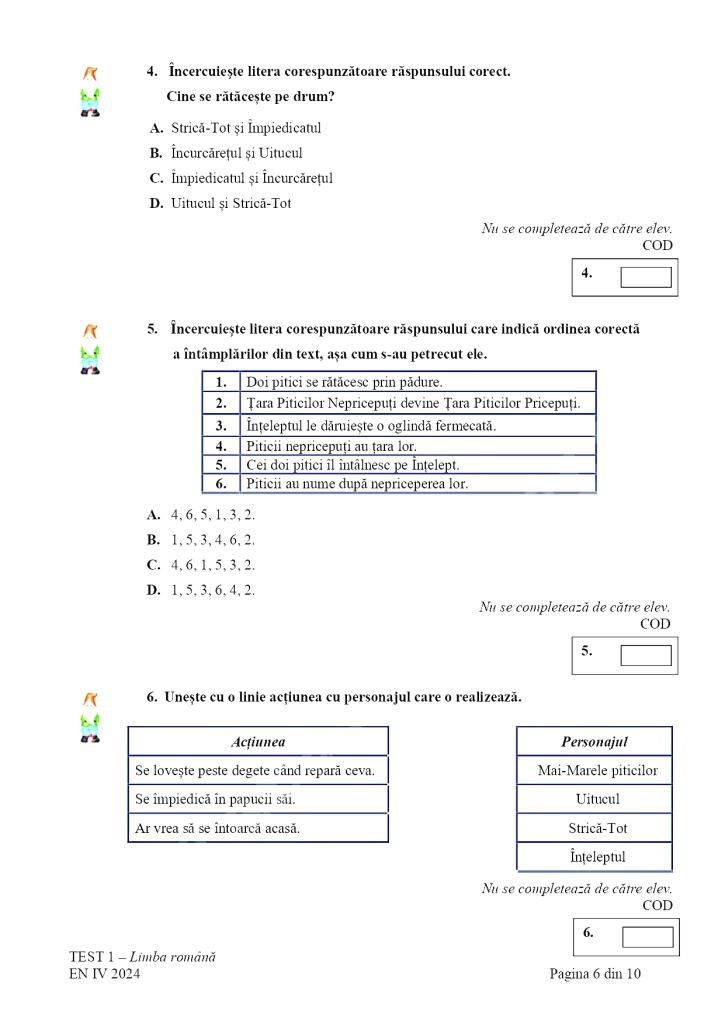 Subiectele la Limba română de la Evaluare Națională 2024, clasa a IV-a, au fost publicate