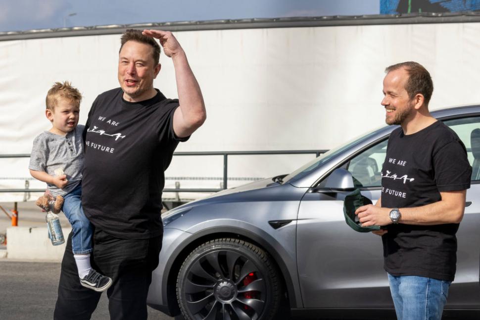 Elon Musk şi fiul său, X Æ A-XII, au vizitat pe 13 martie fabrica germană Tesla din Grünheide, o comună din landul Brandenburg, Germania. Sursa foto: Getty Images Foto 6/17