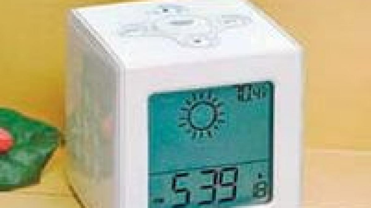 termometru pentru interior, alarmă şi calendar. Dispozitivul este