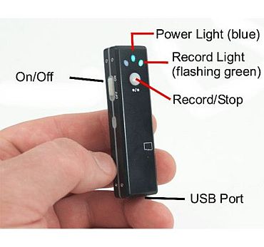 Materialul este salvat pe un card SD. Un card de 1G poate stoca până la 33 de ore de înregistrări. Bateria internă a aparatului se încarcă prin conectarea cablului USB la un calculator. Autonomia oferită de acest acumulator este de aproximativ 2 ore.