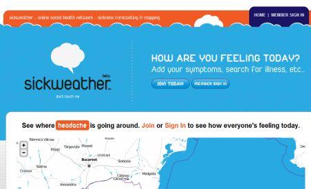 Site-ul Sickweather s-a lansat în această săptămână în Statele Unite. Oricine de pe planetă se poate înscrie pe el, chiar și românii, pentru a afla dacă au șanse să se îmbolnăvească în perioada următoare.