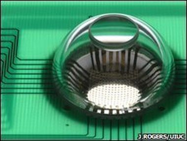 Camera a fost inspirată din ochiul uman şi se bazează pe posibilitatea de a construi sisteme electronice din silicon pe o membrană flexibilă.
