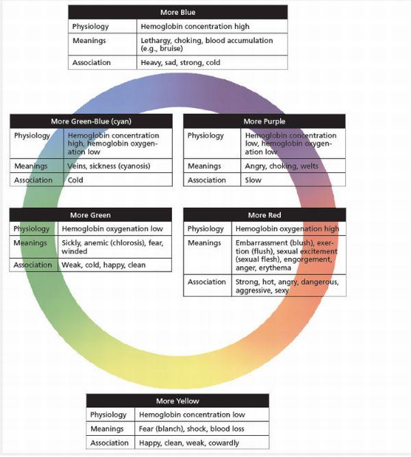 Schimbările fizice bazate pe culoare au loc ca urmare a modului în care sângele circulă sub piele. Concentraţia hemoglobinei variază, precum şi nivelul de oxigenare. Vederea oamenilor este optimă pentru detectarea acestor semne bazate pe schimbările fiziologice. Dintr-un anumit punct de vedere, ochii noştri funcţionează ca nişte camere oxiometrice (determină cantitatea de oxigen din hemoglobină).
