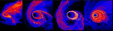Oamenii de ştiinţă susţin că stelele se pot forma din discuri eliptice - rămăşiţe ale unor gigantici nori de gaze care au fost detrămaţi de găurile negre întâlnite. Cercetătorii au făcut această descoperire în urma unor simulări efectuate pe computere foarte puternice, cu nori uriaşi de gaze absorbiţi de găurile negre în acelaşi fel în care apa se scurge, sub forma unei spirale, într-o canalizare.