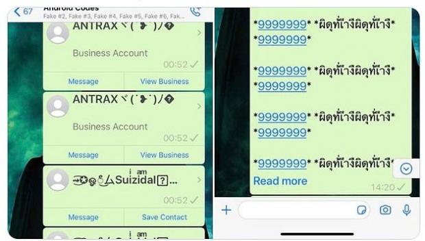 Mesajele care au circulat pe WhatsApp conțin multe numere și caractere necunoscute. Aceste mesaje duc la blocarea activității aplicației, scrie Daily Mail. Potrivit experților, această problemă tehnică a afectat dispozitivele de tip iOS.