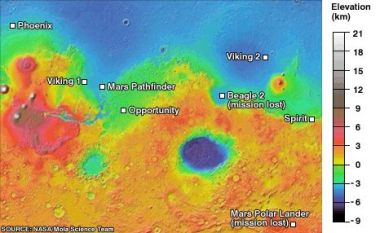 Harta misiunilor pe Marte