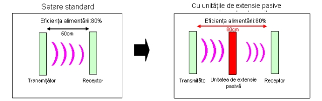 Unităţile de extensie pasive, poziţionate între transmiţător şi unităţile de receptare permit distanţei de transfer să fie mărite, fără diminuarea eficienţei. Conform experimentelor în care au fost utilizate numai componente, distanţa de transfer poate fi mărită de la 50cm la 80cm.