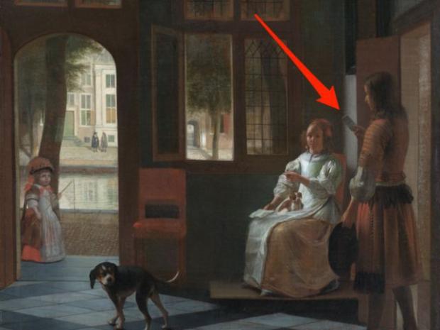 În tablou se poate observa că scrisoarea arată ca un smartphone. Pictura poate fi admirată la Muzeul Rijksmuseum din Amsterdam.