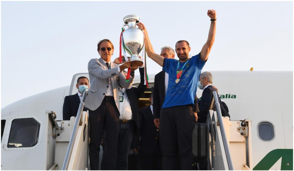 Echipa Italiei a ajuns la Aeroportul Fiumicino din Roma, înainte de a se îndrepta către hotelul Parco Dei Principi.