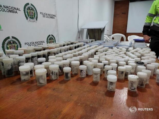 Autoritatea de Mediu din Bogota a anunțat că au fost descoperite cel puțin 232 de tarantule, 67 de gândaci, nouă ouă de păianjen și un scorpion cu șapte pui. Toate au fost confiscate.