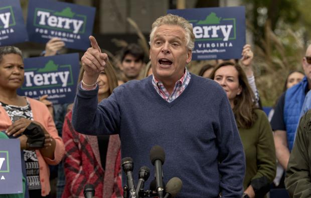 Terry McAuliffe (foto următoare) s-a axat pe dreptul la avort și reforma votului.