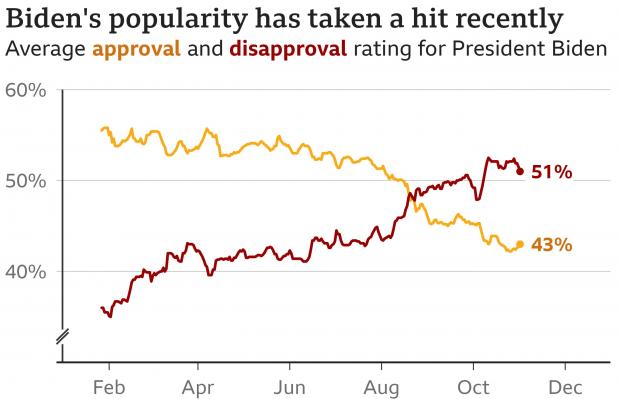 Însă inflația în creștere, recuperarea economică lentă, blocajul din agenda legislativă și retragerea haotică din Afganistan i-au știrbit popularitatea noului președinte.