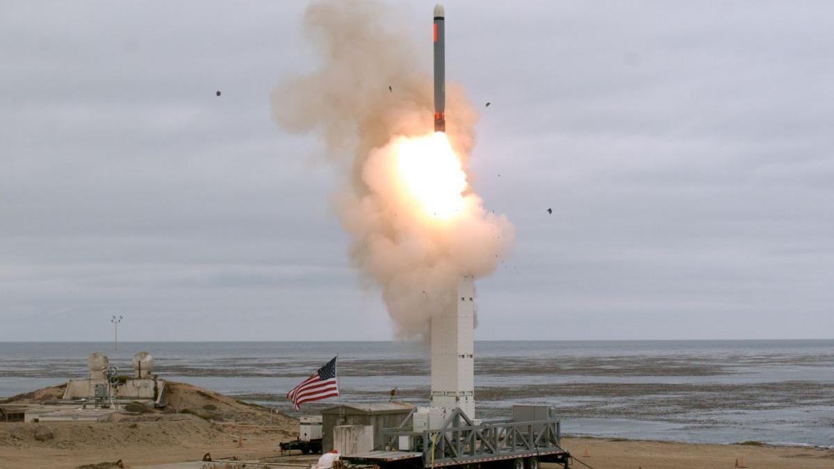 Foto: rachetă de croazieră americană cu rază medie, lansată de pe rampă mobilă terestră dintr-o locație insulară în largul coastelor Los Angelesului, august 2019
