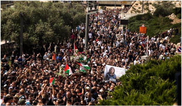 Cei îndoliați au scos sicriul lui Abu Akleh din spital, dar au fost întâmpinați cu o rezistență puternică din partea poliției israeliene, care i-a obligat să transporte cadavrul cu mașina. Au fost lansate o bombe luminoase și gaze lacrimogene.