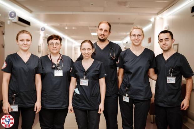 Foto interior: Oksana Leontieva (a treia din stânga), medicul oncolog la spitalul Ohmatdît din Kiev, a fost ucisă luni, 10 octombrie, de o rachetă rusească