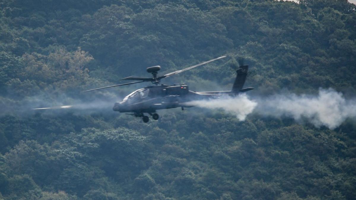 Foto: elicopter Apache al armatei taiwaneze în timpul unui exercițiu militar în districtul Pingtung, pe fondul amenințării militare a Chinei, septembrie 2022