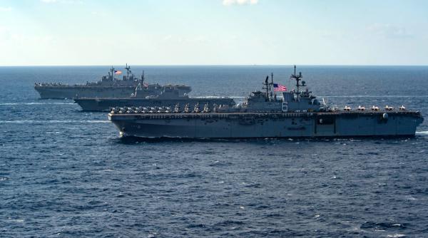 O declarație a Marinei Militare a SUA precizează că navele deplasate în Marea Filipinelor au efectuat "antrenamente în vedere păstrării și apărării unei regiuni Indo-Pacifice libere".