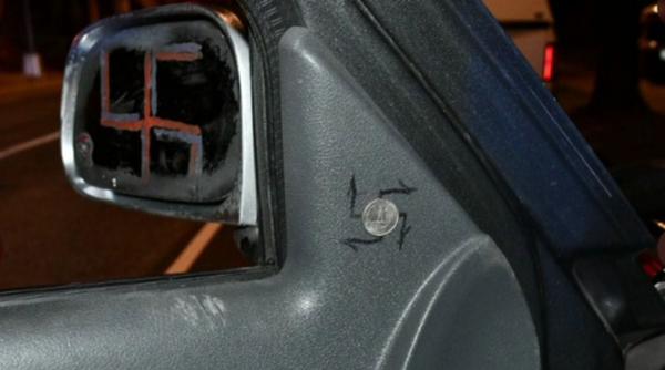 Vehiculul bărbatului este cel care le-a atras atenția polițiștilor: avea o zvastică desenată și mai multe simboluri folosite de susținătorii supremației rasei albe, relatează CNN.