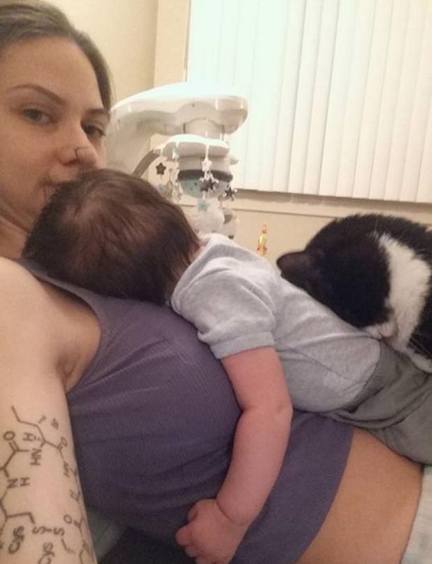 Pisica Panda a surprins pe toată lumea când a a manifestat o afecțiune adorabilă față de burtica stăpânei sale însărcinate, iar apoi și față de bebelușul nou-născut.