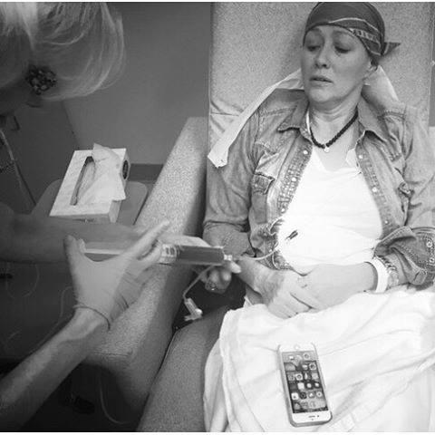 Actriţa Shannen Doherty, care a fost diagnosticată cu cancer la sân anul trecut, a publicat o serie de fotografii sfâşietoare ce o înfăţişează la una dintre şedinţele de chimioterapie.