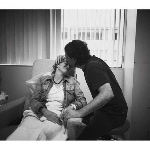 De asemenea, actriţa a mai postat alte două imagini – una în care soţul său, Kurt Iswarienko, o sărută pe frunte, iar în cealaltă are capul în poala mamei sale.