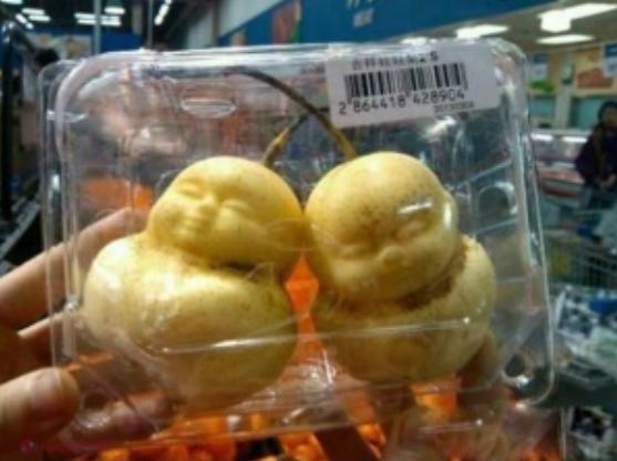 Este vorba despre perele care au forma unor bebeluși. Fructele se vând în Beijing şi sunt „forţate” să ia forma unor bebeluşi încă de la primele semne de creştere.