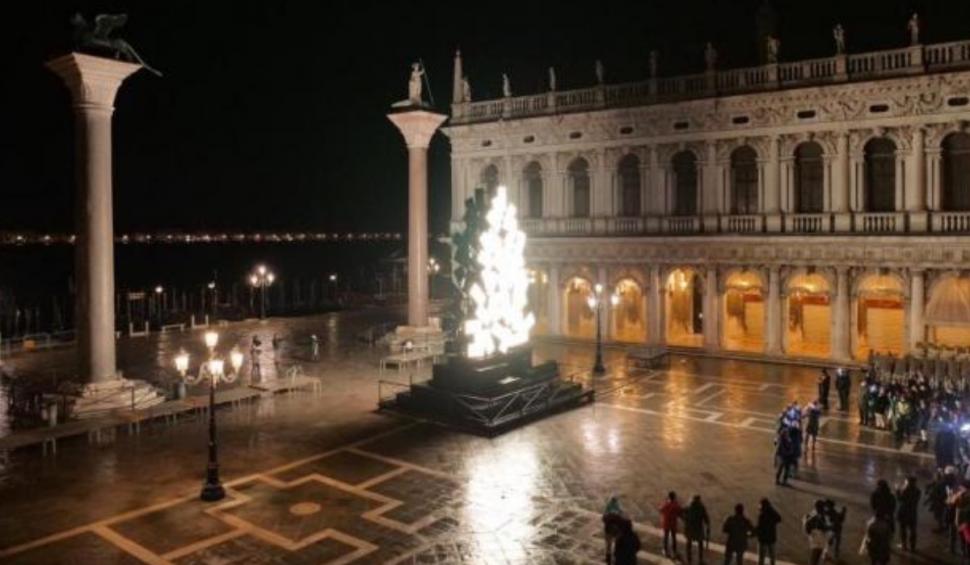 "Crăciunul este aprins în Piața San Marco cu fluxurile de lumină aurie ale sculpturii lui Fabrizio Plessi. Podul Rialto spune povestea Veneției cu proiecții video care deschid sărbătorile, la 1600 de ani de la nașterea orașului." arată mesajul publicat pe pagina de Facebook a Primăriei din Veneția.