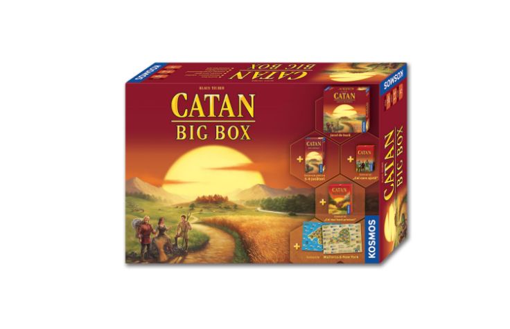 Reducere 45%. Joc de societate Kosmos, Catan Big Box. Jocul de baza, extensia pentru 5-6 jucători şi 4 scenarii diferite în aceeaşi cutie! Scenariile pot fi combinate cu materialele jocului de baza şi pot fi jucate chiar şi în 6 persoane. Fiecare extensie aduce noi posibilităţi, diversificând şi mai mult lumea Catan. CATAN încânta milioane de jucători din întreagă lume. Mereu surprinzător, la fiecare nouă ediţie.
