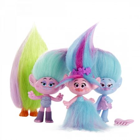 Set 4 figurine Trolls Poppy's Fashion Frenzy. Tema acestui set: coafuri trăsnite! Setul conţine 4 figurine adorabile şi la modă din filmul animat Trolii de la DreamWorks cu coafuri trăsnite. Colecţionează-le pe toate şi distrează-te cu părul pufos al figurinelor.