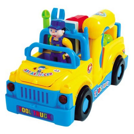 Reducere 45%. Camionetă de jucărie M-Toys cu ustensile, lumini şi sunete. Camionetă de jucărie M-Toys cu ustensile, lumini şi sunete va oferi copilului dumneavoastră momente pline de distracţie şi veselie, iar dumneavoastră, privindu-l, zâmbete. Bormaşina este funcţională copilul putând să o folosească pentru a înşuruba/deşurubă şurubul din camion.