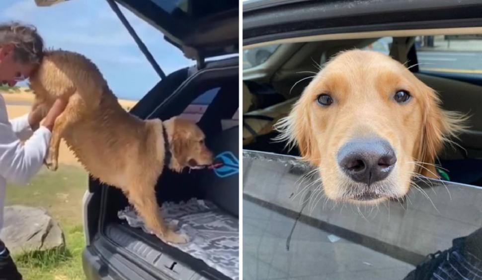 Unul dintre stăpânii animalului a fost nevoit să îl ia pe sus și să îl împingă în mașină. Lucru care nu a fost deloc ușor pentru că, aparent, câinele era greu.
