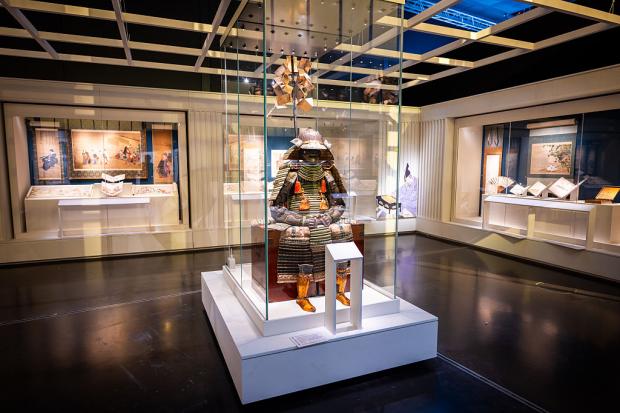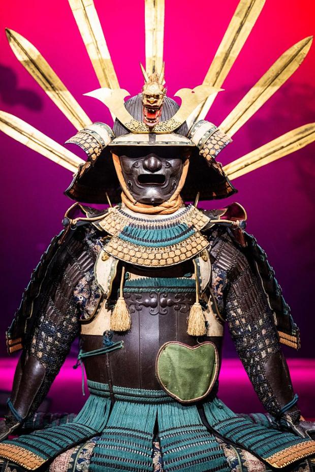 Perspectiva lor adaptabilă a însemnat că au îmbrățișat și influențe multiculturale și tehnologie străină, o altă fațetă surprinzătoare a identității samurailor. O magnifică armură de samurai expusă la expoziție a fost inspirată de un design portughez. Are partea frontală ascuțită și laterale înclinate pentru a devia gloanțele de muschetă, caracteristici care au devenit necesare abia după importul de arme de foc europene în Japonia în 1543.