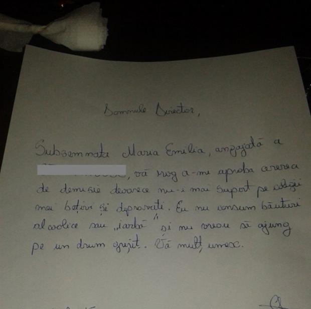 O tânără româncă a avut curajul să demisioneze și să invoce câteva motive solide și reale atunci când și-a realizat cererea de încetare a contractului de muncă. I-a lăsat-o șefului pe birou iar acesta a avut un șoc atunci când a citit-o.