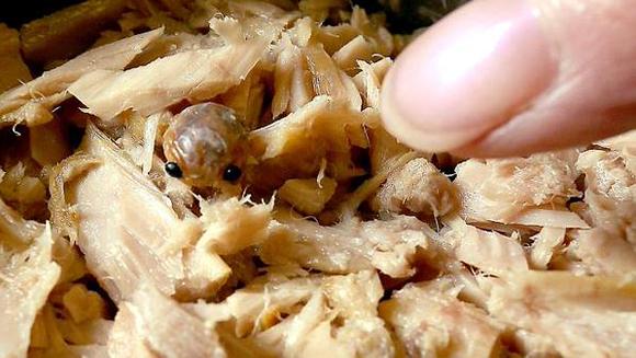 O femeie a avut parte de o surpriză extrem de neplăcută atunci când a desfăcut o conservă de ton. Privind cu atenţie conţinutul, ea a observat că în cutie era o creatură bizară care mişca.