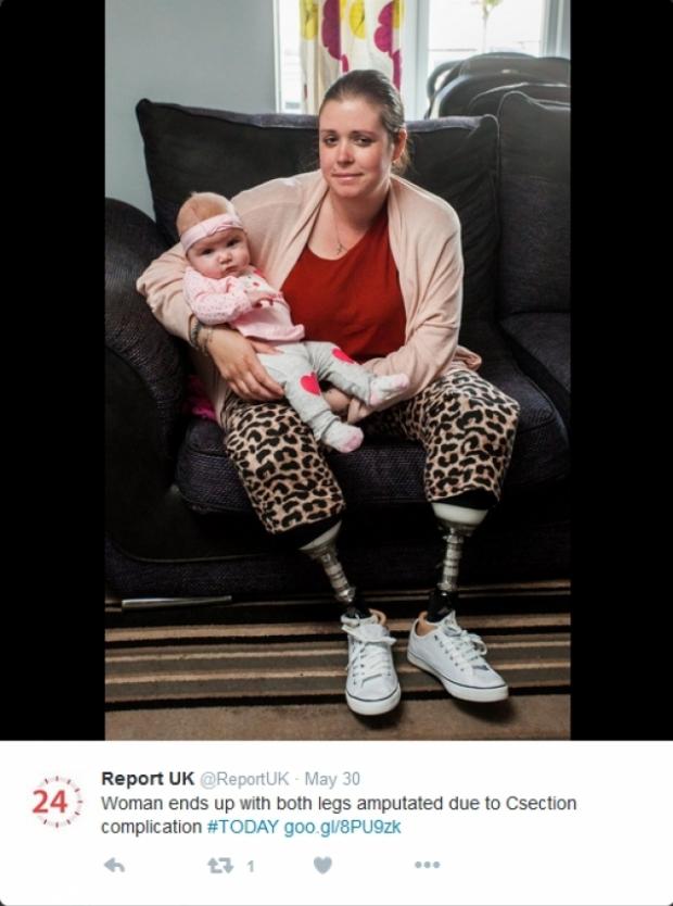 Ella a pierdut sase litri de sange pe masa de operatie si a primit cinci transfuzii, apoi a fost pusa intr-o coma indusa. Medicii au ajuns la ea dupa 6 ore cand de fapt era prea tarziu. Dupa o astfel de operatie apar cheaguri de sange iar doctorii trebuiau sa o verifice la fiecare ora, insa acest lucru nu s-a intamplat. Picioarele erau pline de cheaguri de sange si au fost nevoiti sa i le amputeze pe amandoua de sub genunchi.