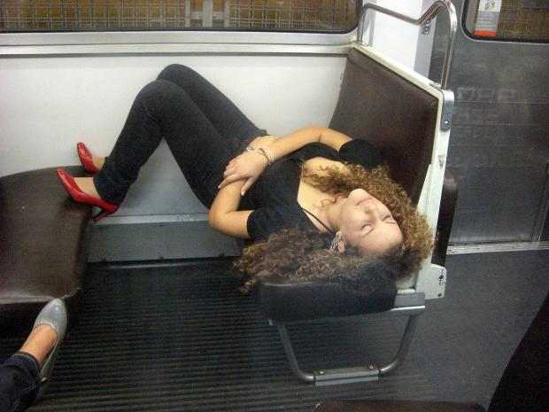 Sambata seara nu se termina tocmai bine pentru unele dintre domnisoarele care aleg sa se distreze un pic peste masura. Pare fi si cazul fetei care a ajuns sa se faca de rusine in metrou. Ea a adormit pe scaunele dintr-un vagon si a fost fotografiata de mai multi calatori care au urcat poza pe net.